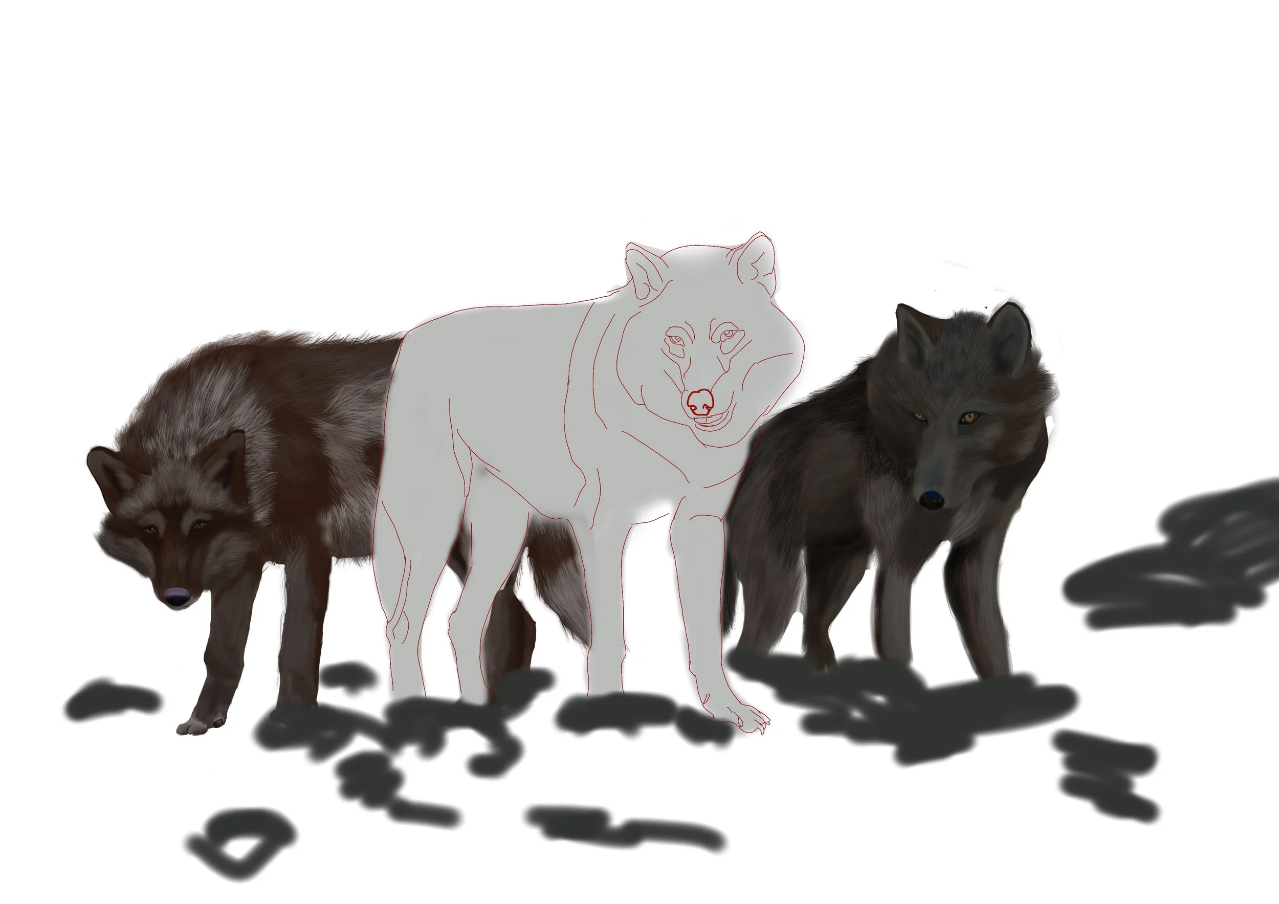 I wanted to change the head level. I originally had it so the white wolf was taller than them both, but the angle of the grey wolf wasn’t working because it was supposed to be on flat land and even if the ground wasn’t level, it would be pointing downward to the bottom of the page.