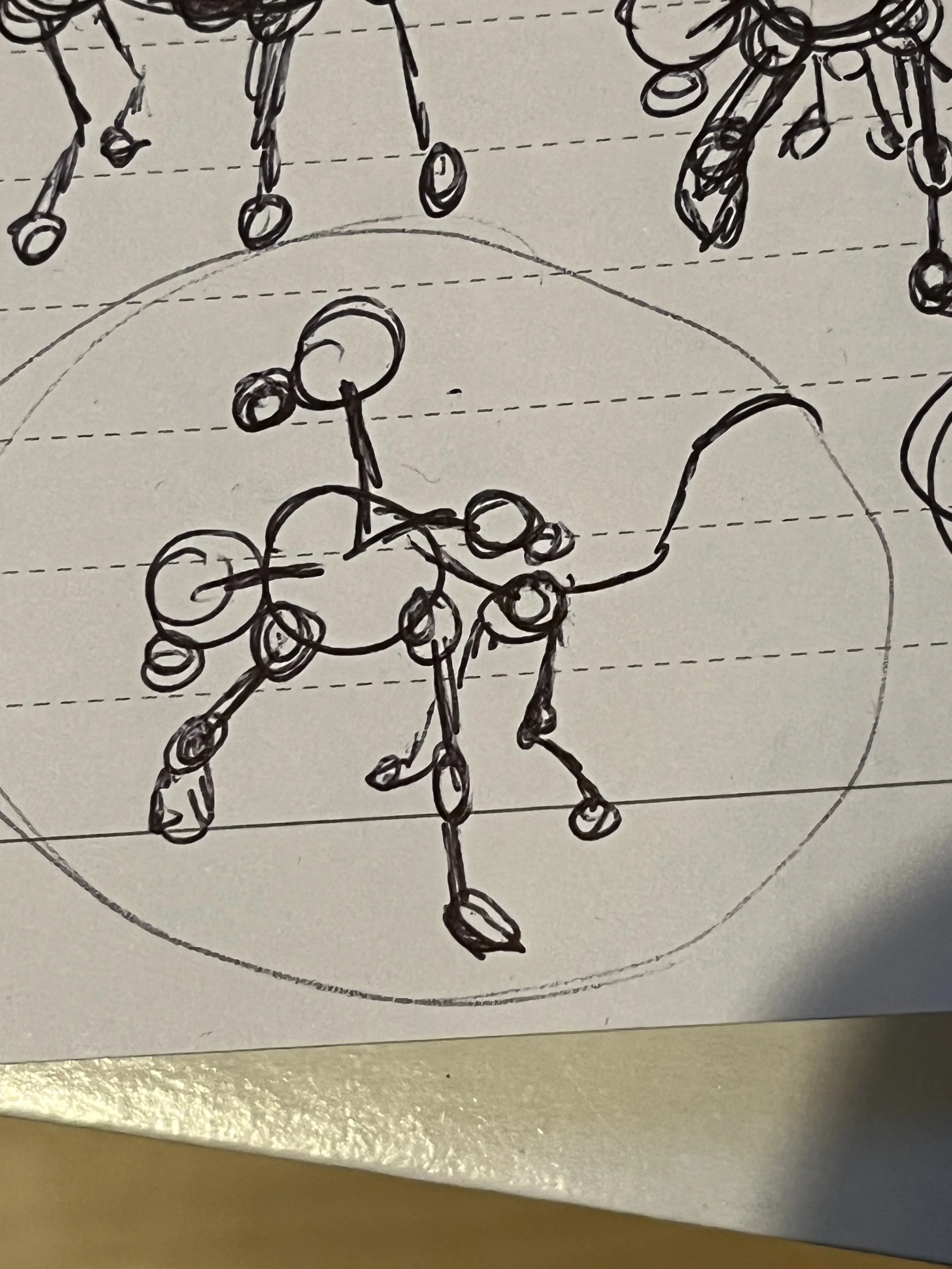It took me a while to figure out the body because I’m not the greatest with anatomy function in drawings, but I’m learning, I promise! At this point, I opted for making the form visually appealing than perhaps how it might have looked if someone was pulling it from the front leg. I needed to figure out how to create the tension there.