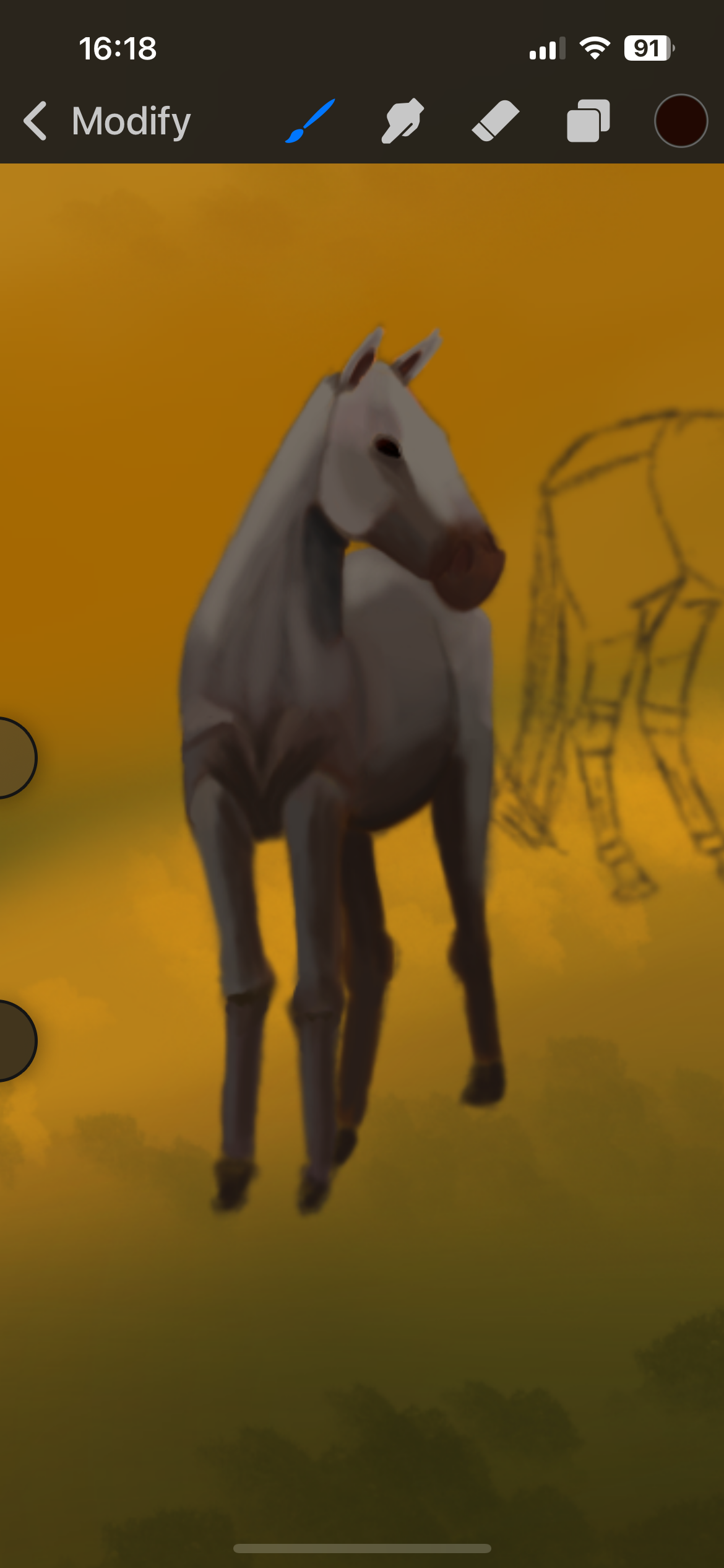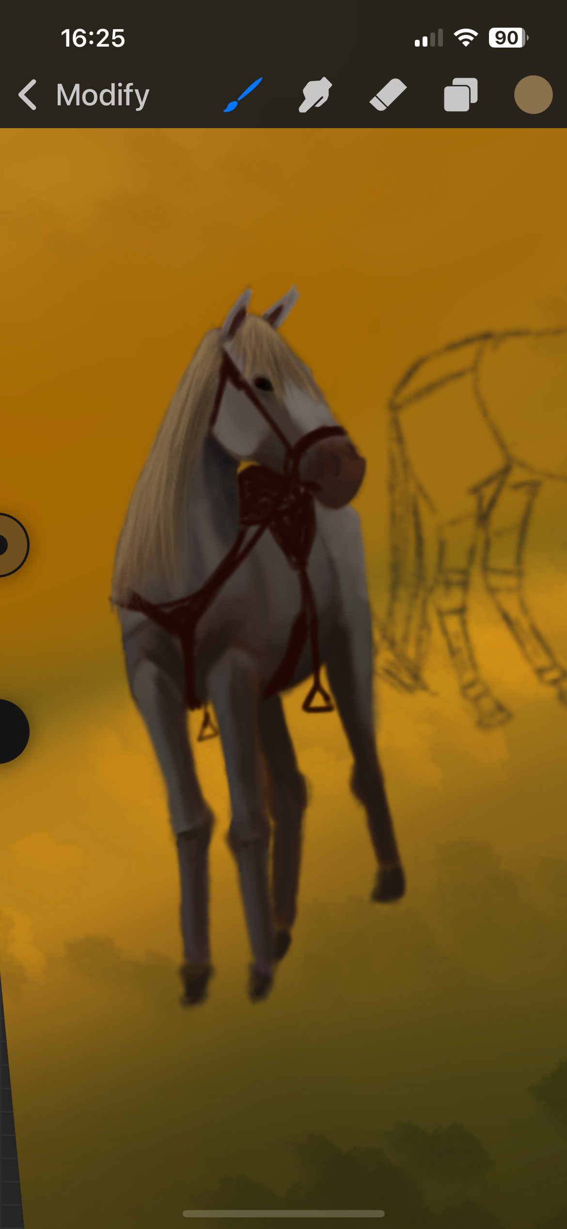 All of this was just the airbrush tool, starting with block colours and then blending it with the guide of the white sunset horse I had chosen to use as my reference.