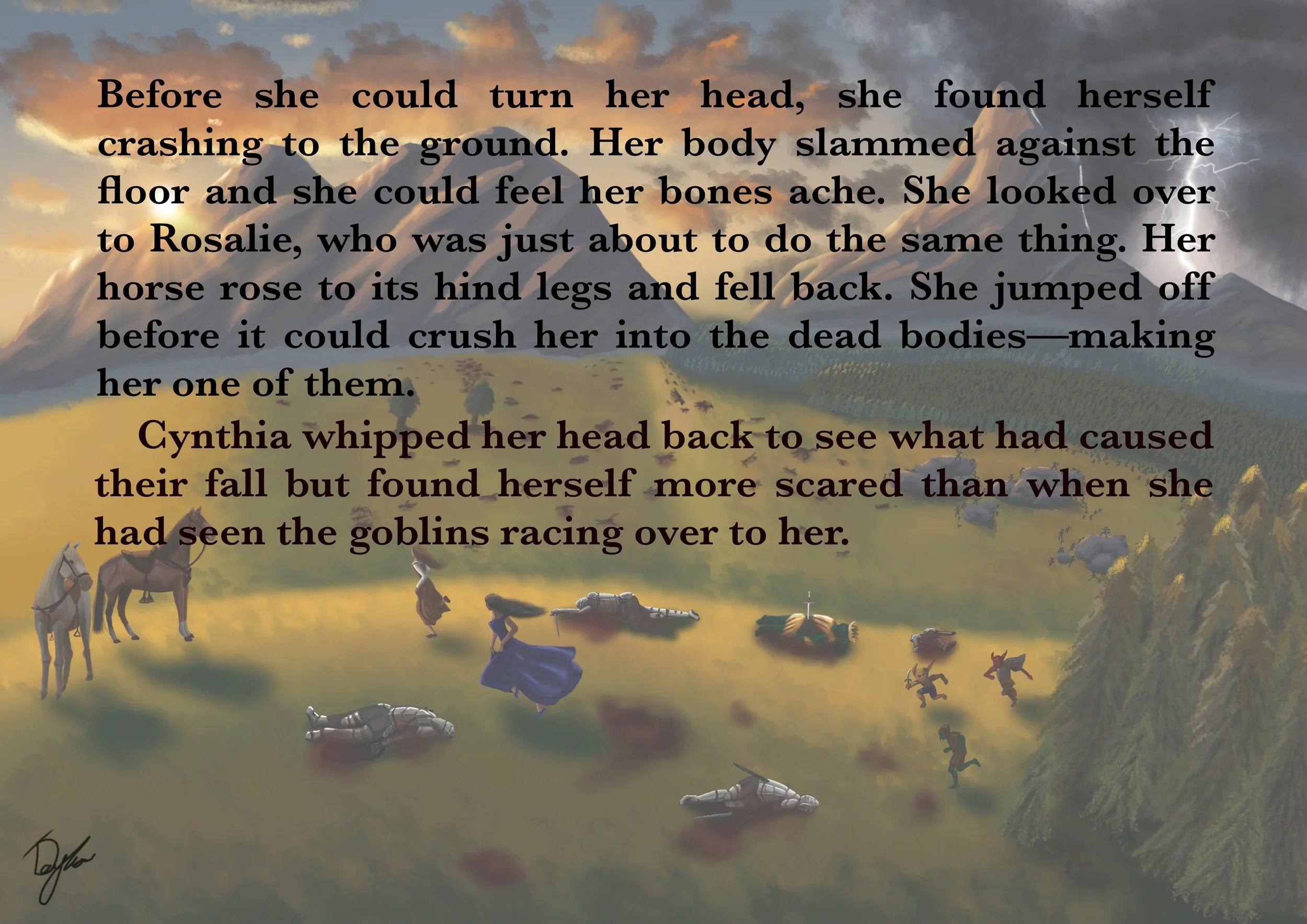 There are a lot of truths untold here and Cynthia is still lost within the context of what she is fighting for. She overestimates her power and steps out to aid the large canine against the goblins who outnumber her by many.
