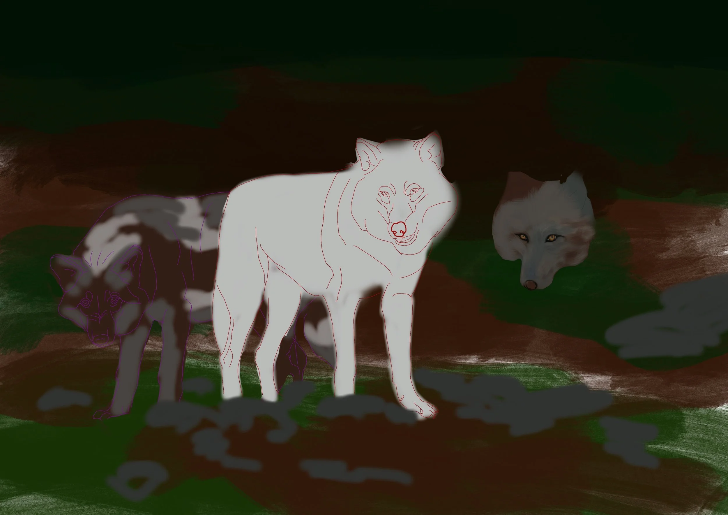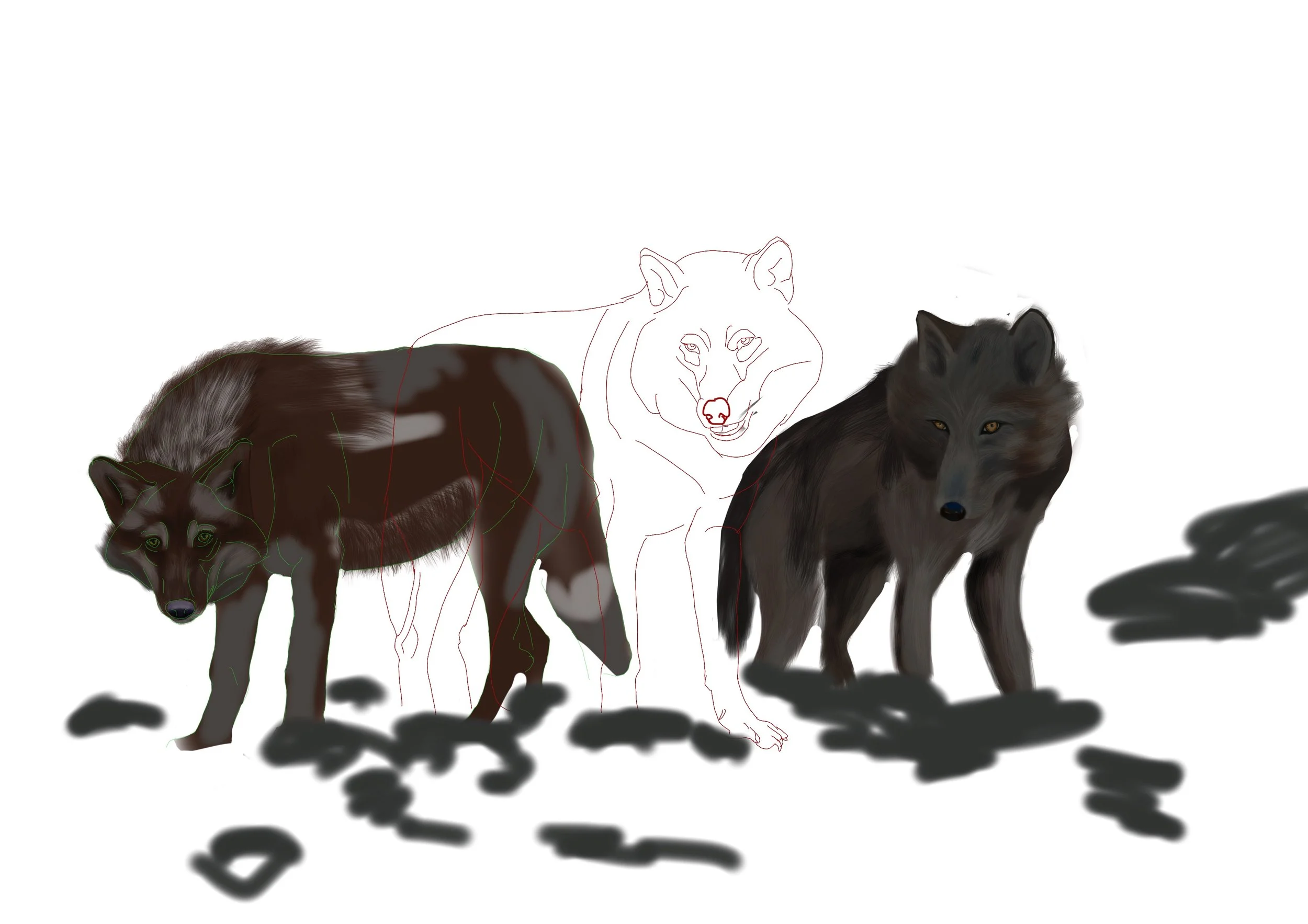 Yeah … so drawing wolves isn’t something I’ve ever done through digital art. I have never been good at it by hand, so I wasn’t totally confident, but I started with vague outlines and airbrushed my colour ideas.