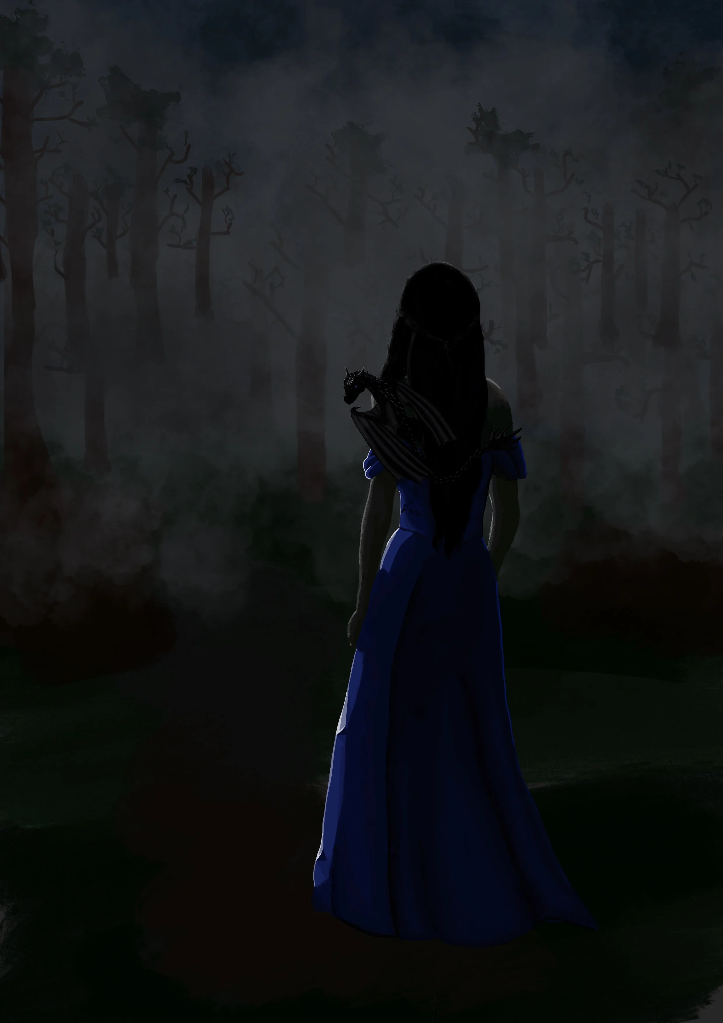 I couldn’t remember if I had a specific description of what dress Cynthia was wearing at this point, so I decided to put her in the blue dress she wears within the chapter ‘Corpses in the Battlefield’.