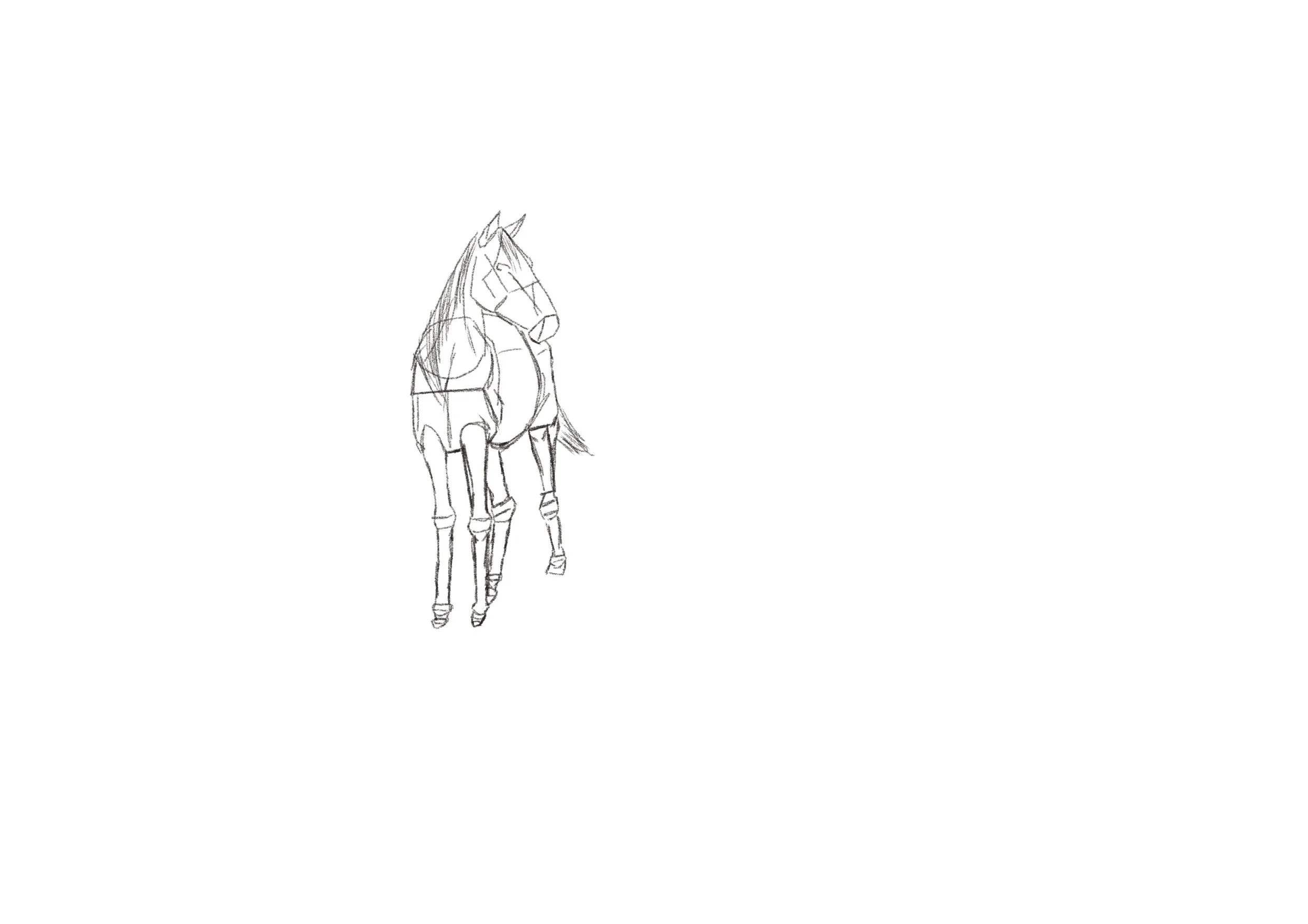 But in this moment, I didn’t want to just copy an image of a horse, I wanted to understand where the figure is built from within the shapes. This is where I found an image online and followed those guidelines for the horses I would be drawing.