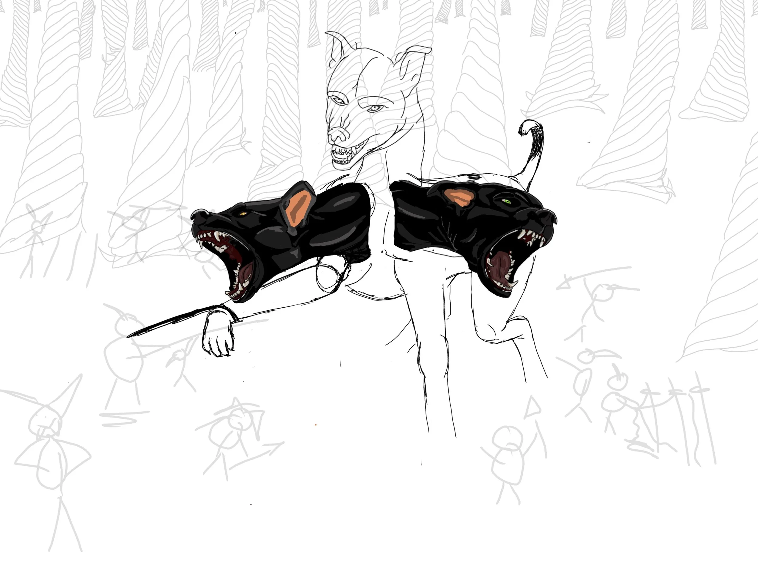 Hear me out, I am not that great at scaling. Yes, I’m nit-picky but it’s true. In this case, the three-headed dog is supposed to be large, the goblins are supposed to be a mix between small, and medium height. Then there are the trees, they’re supposed to be thick, but to be honest, I draw them I don’t know why I opt to make them standard size.